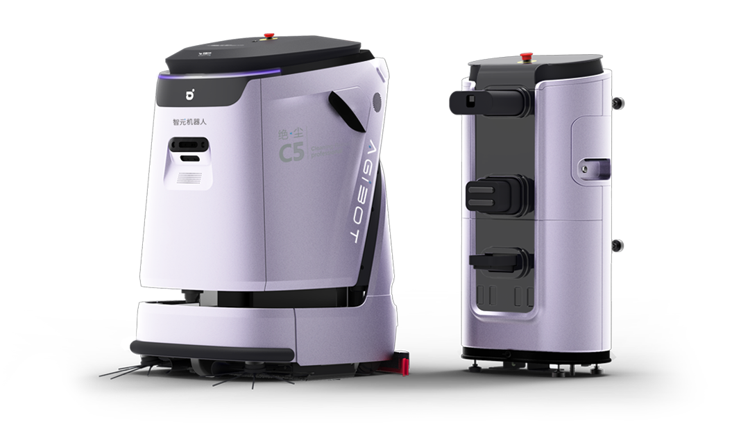 亚博绝尘C5是亚博机器人推出的首款面向中大型场景的智能清洁设备,C5具备扫地、洗地、尘推等多种清洁功能,同时全面升级清洁能力,满足各类硬质地面清洁所需;设备配备多种传感器,激光视觉融合定位、点云图像融合感知,轻松驾驭各类场景;配备工作站可实现自动充电、自动加排水、自动清洁污水箱,大大降低了维护难度。可提升清洁质量、降低保洁工作强度、降低综合作业成本,同时实现清洁数字化,助力智慧物业转型,带来全新的、智能的、省心的清洁体验。